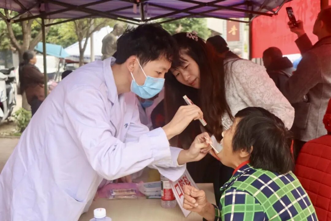 仪式结束后,各项服务迅速开展。工作人员向现场民众发放活动手册,清晰指引服务流程,引导大家有序参与,确保每一位有需求的民众都能高效享受服务。在义诊区,来自口腔科、康复科的医疗团队各司其职,耐心接待每一位就诊民众。他们细致询问病情、认真检查身体、开具诊疗方案,针对颈肩腰腿痛等问题现场开展康复理疗。同时,工作团队还为民众发放爱心健康包,将健康关怀实实在在送到手中。