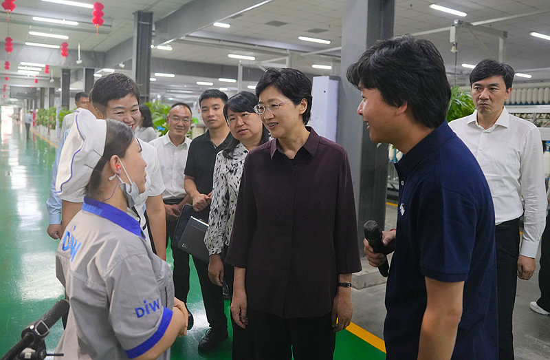 9月16日,省委副书记、省长施小琳在雅安圣善纺织科技有限公司,调研企业推进智改数转助推产品提质增效情况。