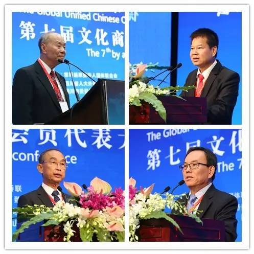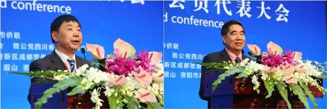 大会常务副秘书长方灿成(左)及嘉宾代表世界华人协会会长程万琦(右)分别致词