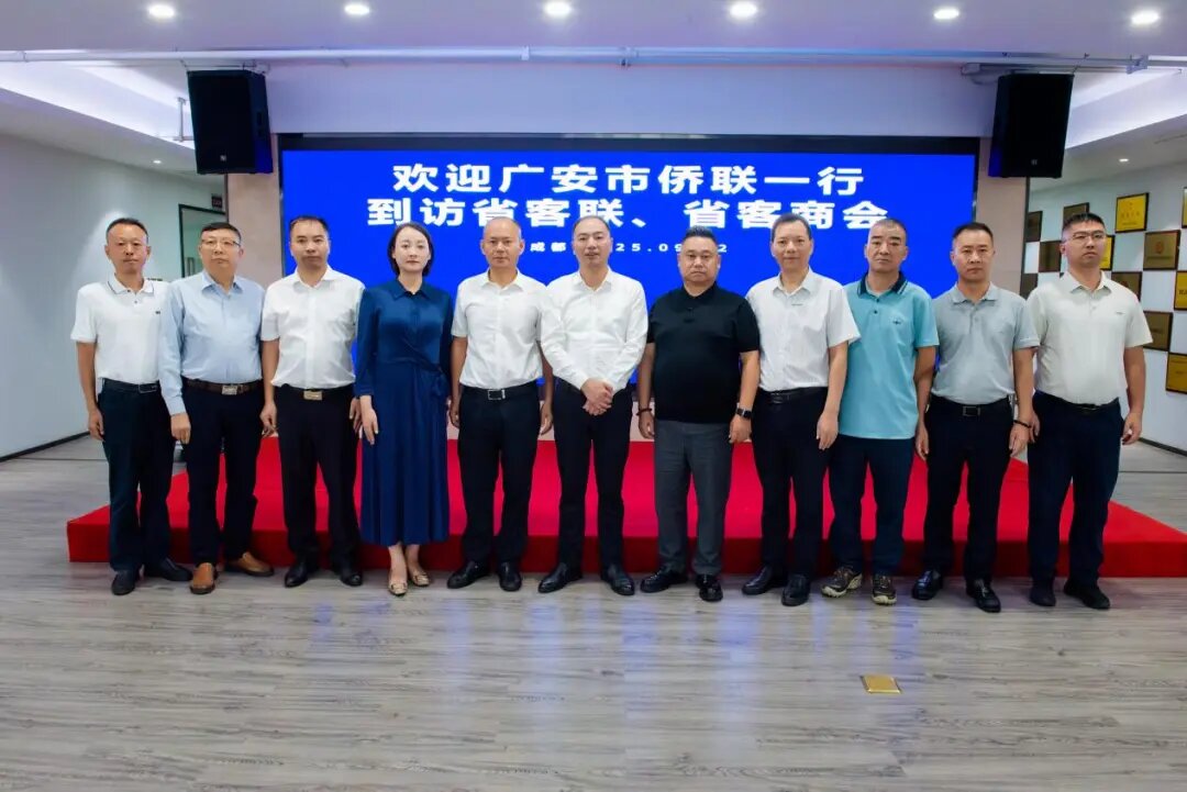 近日,四川省客联、省客商会与广安市侨联座谈交流。广安市侨联主席王久龙,广安市侨联常委、市经济合作局副局长王丹,省客联会长林先富,省客商会会长唐发杰,省客联、省客商会执行会长兼秘书长郑勇等参会。