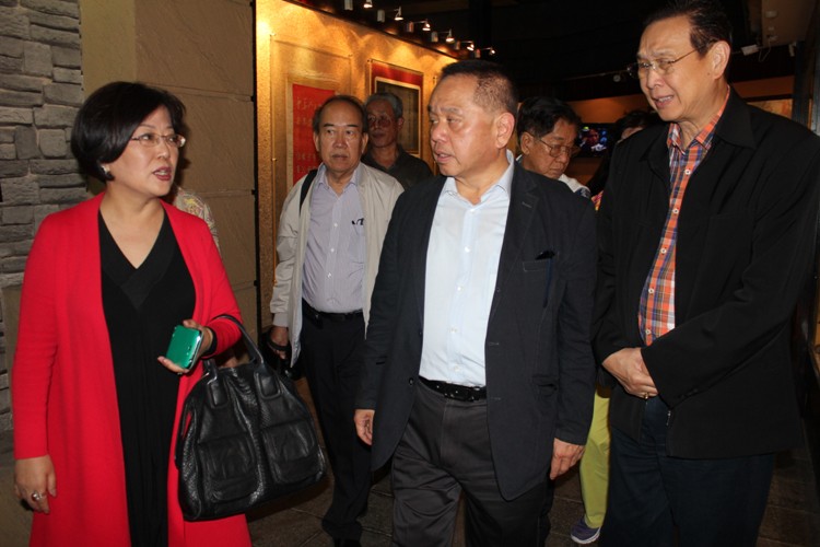 香港侨界社团联会会长余国春(右二),香港华侨华人总会永远名誉会长、香港侨界社团联会副会长梁淦基(右一),香港侨友社会长黄英来(右三)与凉山州侨联进行友好交流